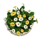 Beautiful flowers in a round wooden pot
