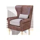 A wonderful upholstered armchair for the living room, to which additional comfort is given by a headboard cushion. An original detail that gives a special charm to the armchair - paired elements hanging on the back. The sides of the armchairs also have a special decor around the edges. The armchair is available in several upholstery options. An armchair with a curved back and wooden legs looks very modern and elegant. It is extremely comfortable thanks to the smooth, streamlined lines of the padded seat and armrests. Conveniently enough, the model is equipped with a removable cover that comes in a range of attractive colors.