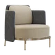 The soft curve of the shell, which designs the armrest and that accommodates the soft back cushion, highlights the pure and enveloping line of the armchair. In one version, the fabric covers the back and the seat cushion, while the shell and the tape detail are in leather of the same colour; in the other, the textile envelops the back, the seat cushion and the entire shell, while the tape detail is in light bronze-coloured saddle-hide. With its firm formal identity and its impeccable proportions. Tape armchair becomes the protagonist of the space that welcomes it, both in residential and hospitality contexts.
