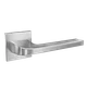 Lever set. 52mm square plate. Easy to fit into metallic adapter with “click” system. Reversible recuperating spring. 8x100mm square spindle. Handle fixed by a M6 hidden threaded pin.