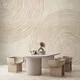 An oasis is created when warm, earthy plain wallpaper tones complement the meditative circles of this design. A quiet, relaxing place of well-being opens up, whose welcome culture becomes even more intense in the interplay with structurally strong furniture fabrics, thick woolen blankets, carpets, cushions and a soft lighting concept. With "Zen garden" you can create a strong, down-to-earth support for hotel facilities, for wellness and healthcare areas, bathrooms or yoga studios.