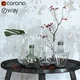 3D Model - Transparent glass vases and plant