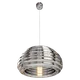 Suspension fixture providing direct lighting. Polished and protected with transparent paint, spun aluminum reflector. Steel ceiling fitting, vacuum-formed ABS rose with gloss white finish.