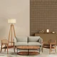 This Scandinavian living room blends warmth and minimalism. Light wood furniture, like the tripod floor lamp and rattan-backed chairs, contrasts with the soft gray sofa. A neutral palette, natural light, and clean lines define the space, reflecting Scandinavian design principles.