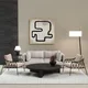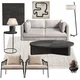 This modern living room boasts a minimalist aesthetic with a neutral color palette. A floor lamp and a small table lamp provide soft lighting, complementing the textured wall panel on the left. The room exudes a sophisticated and serene ambiance.