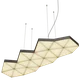 The perfect triangular tiling honeycomb, the Tri Light. An enlightenment piece for the post-factual era. A paracompact flexible design system that can easily be perpetuated into infinity. For those of us humble enough to understand constraints of mortality it can be custom build to desired size and shape. Milled and anodized, each aluminum triangle shines on its own, creating widely dispersed, harmonious light evoking the importance of the elementary particles. Let the led shine thru.