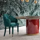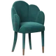 Chair with solid wood frame with curved backrest worked as a petal. Completely covered in fabric or leather. Metal finishing.