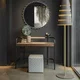 Desk with painted metal structure and wooden top with the surface covered with leather. Accessories: mirror, jewelery case, storage compartment to the right of the top with pressure opening and LED light incorporated in the structure with switch on / off by sensor. In addition to the standard version, there is a version with connections: multi-socket and wireless charger for enabled smartphones.