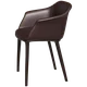 Armchair with rigid polyurethane shell available in leather with a thin seat cushion integrated, or padded and covered with soft leather, felt, innovative material or material provided by the customer. Structure with 4 legs, covered with the same material of the shell.
