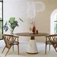 An iconic design of contemporary sophistication, this gorgeous round table by Libero Rutilo will add a refined and elegant accent to a modern living or dining area. Handmade of ash wood, the round top rests on a conical base made of pleated white marble. Please consult the Concierge for further details.