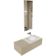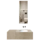 AZUCO 24.02 is a composition composed of one base with drawer and top in Bianco Siberia marble (Cod. 4894) with side (Cod. 4570), one base with drawer, top and Void round undermounted basin in white Milltek gel (Cod. 4891) and side (Cod. 4570) in Bianco Siberia marble. Vetra mirror with four-sided LED backlighting, chemical zero aluminum profile (Cod. 2270). Ljos shelf in platinum lacquered aluminum, complete with accessories and LED backlighting (Cod. L06L). Flow L02 faucet in satin-finish stainless steel (Cod. 2555 and Cod. 2556). Flow W01 satin-finish stainless steel flush plate (Cod. 2590).