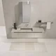 Well-defined and essential geometries: ZENIT is a container system designed for under the washbasin. It comes with a single-block or modular layout, both available as floor-mounted and wall-mounted versions for maximum functional versatility. Lacquered surfaces with veneer finish or in clay ensure the widest possible customizing options. The 45° cutting angle serves as continuity between the front and sides, the central groove as a functional element, but with a markedly aesthetic connotation.