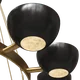 An exercise in balance and sophistication, this chandelier is an ideal decoration for a large living room when placed above a stately dining table. The structure is in brass with a natural finish and comprises a round base with 14 arms stemming from a ceiling cup and attached to a large ring. From the external perimeter of the ring, 14 horizontal elements support a half-spherical cup painted black to create a color combination that is timeless and visually striking. Contract and commercial certifications available upon request.