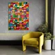 This painting depicts a densely built-up fantasy city, where each building is a different color and shape. Red, turquoise, orange, yellow and pink facades create rhythm and visual movement, like a mosaic of moods. Despite the geometric repetition, the composition is alive - every window and roof is endowed with character.