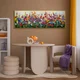 This canvas is a riot of colors and textures: petals of red, purple, pink, orange and blue flowers are tightly intertwined in an emotionally rich rhythm. The voluminous strokes create a sense of movement, as if the wind is passing through a blooming field. The composition charges with optimism and captivates with vitality.
