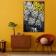 This canvas exudes a fresh breath of nature: large white daisies with bright yellow centers explode against a deep black background. The expressive texture of the brushstrokes and accents of yellow wildflowers give the composition rhythm and lightness. The overall image conveys the energy of a sunny morning and the effortless beauty of summer.