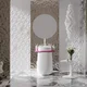 The ORIENTE TOTEM floor stand is one of the key elements of the collection. Reminiscent of a miniature font, the ORIENTE TOTEM basin appears to float in the air thanks to its rounded base. The traditional shape of the basin has high edges to prevent water from spilling beyond its boundaries.