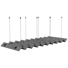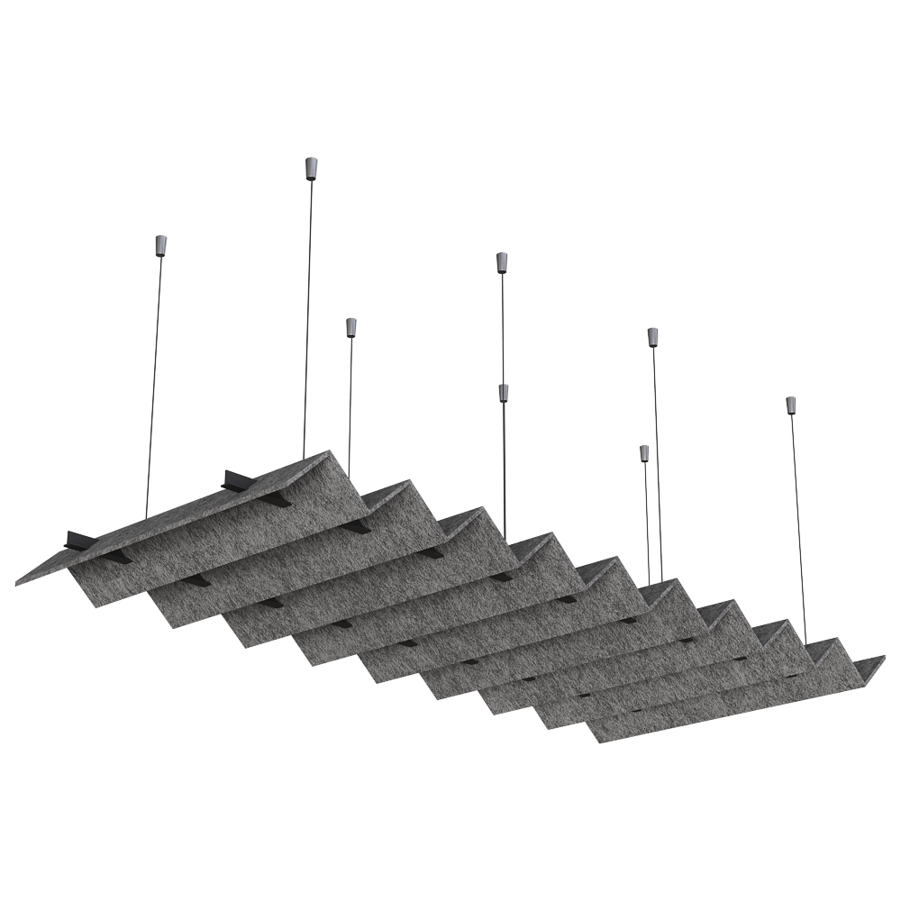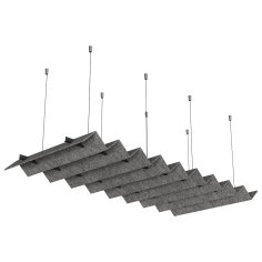 Acoustic ceiling panels offer a unique solution for improving interior acoustics. Thanks to their vertical, parallel layout and innovative shape, the panels effectively absorb sound, giving the space a light and dynamic feel. Made from eco-friendly polyester fibres derived from recycled PET bottles, they are environmentally friendly, health-friendly and resistant to damage and pollution. Ideal for large, open spaces, they also ensure free airflow and optimum use of natural lighting.