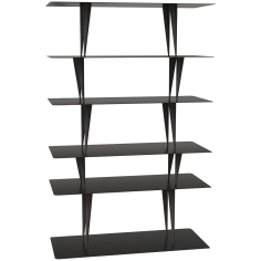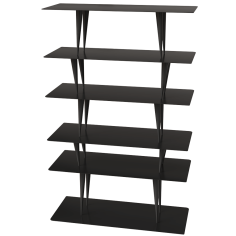 MORI is a freestanding bookcase with steel shelves and carbon fiber legs available in four different hights, 27 cm, 33 cm, 38 cm and 48 cm. Different color finishes. Custom sizes available.