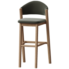 Its silhouette is defined by subtle curves that evoke the fluidity of sails in the wind, while the solid wood structure brings to mind the sturdiness of a ship’s hull. The footrest, carefully integrated into the design, offers comfort and support while enhancing the stool’s architectural balance.
