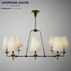 Chandelier Jonathan Adler. Stretched 47 inches long and crafted from polished brass with matte linen shades
