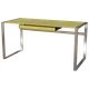 Metal structure, tempered glass or oak top with leather insert, glass or neutral drawer front
