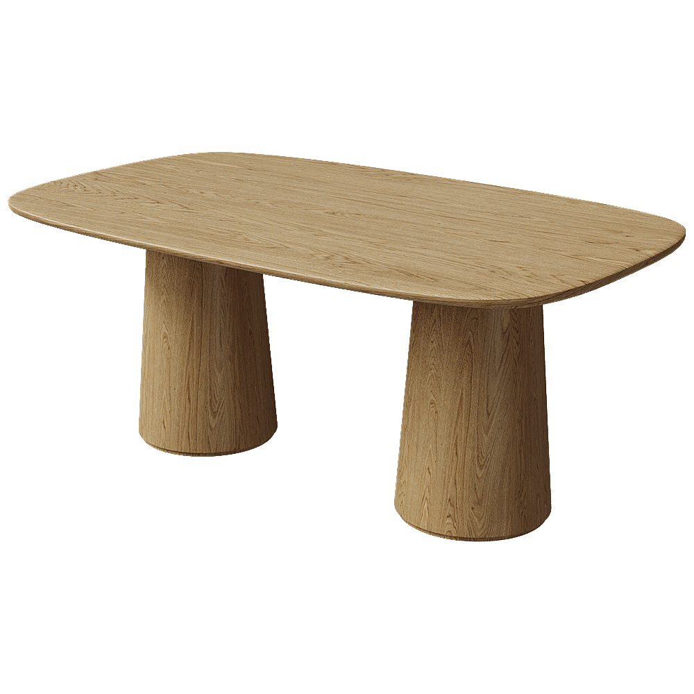 As well as creating visual intrigue, the conical base of Amos provides exceptional stability, effortlessly supporting the solid wood tabletop. Its sleek, tapered form not only adds a unique aesthetic touch but also ensures the piece remains sturdy, even with frequent use. The thoughtful design behind the base allows for a perfect balance of elegance and durability, making it a standout in any room.