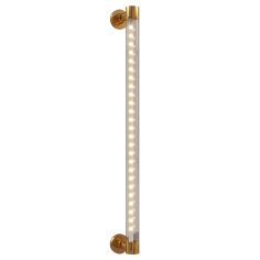 A plug-in light fixture housed in a frosted glass tube with a 24 mm diameter provides optimal light distribution to the mirror, into the room, and onto the viewer. A first-class makeup light that works in your favor. Featuring a patented LED light source.
