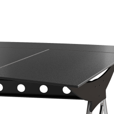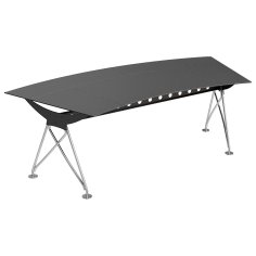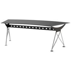 This collection, with its contemporary design, includes a range of desks and conference tables with hard leather or glass tops and bases in stainless steel, silver anodized aluminium or fine-ribbed hard leather. The cabinets, drawer cabinets and bookcase panels are fully covered in hard leather.