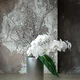 Orchid bouquet with decorative decoration in a long metal vase