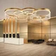The oval or circular shapes, semi circles, can be positioned at various heights, creating large effect structures. The finishes are varied and exclusively internally generated.