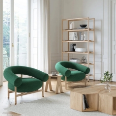 The bronze glass shelves and the cabinets are laid on a light solid wood structure and supported by sleek metal feet, creating an elegant design that gives the illusion of floating ever so slightly. The combination of glass, wood, and metal offers a refined aesthetic that is both modern and timeless, allowing the piece to seamlessly complement a variety of interiors, from contemporary to more traditional spaces.