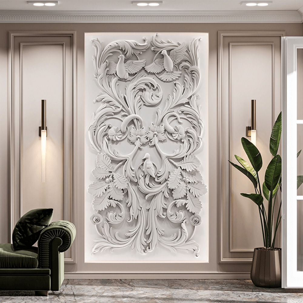 Wall Deco’s bas-reliefs are made of a high-quality gypsum mixture to get an eco-friendly, fire-resistant, and soundproofing material. As a result, our bas-reliefs are not only lightweight but also durable. Due to the material’s flexibility, Wall Deco company’s product range is full of designers' most creative and original ideas.