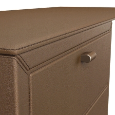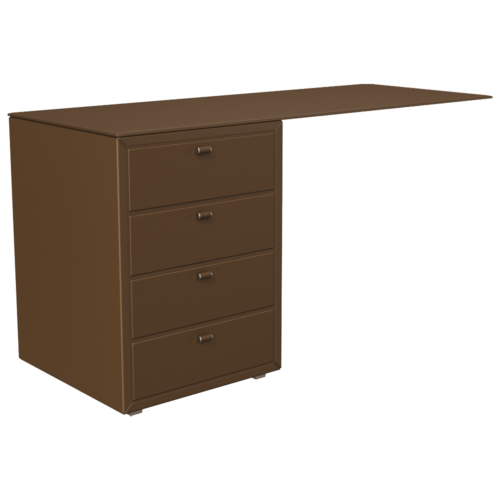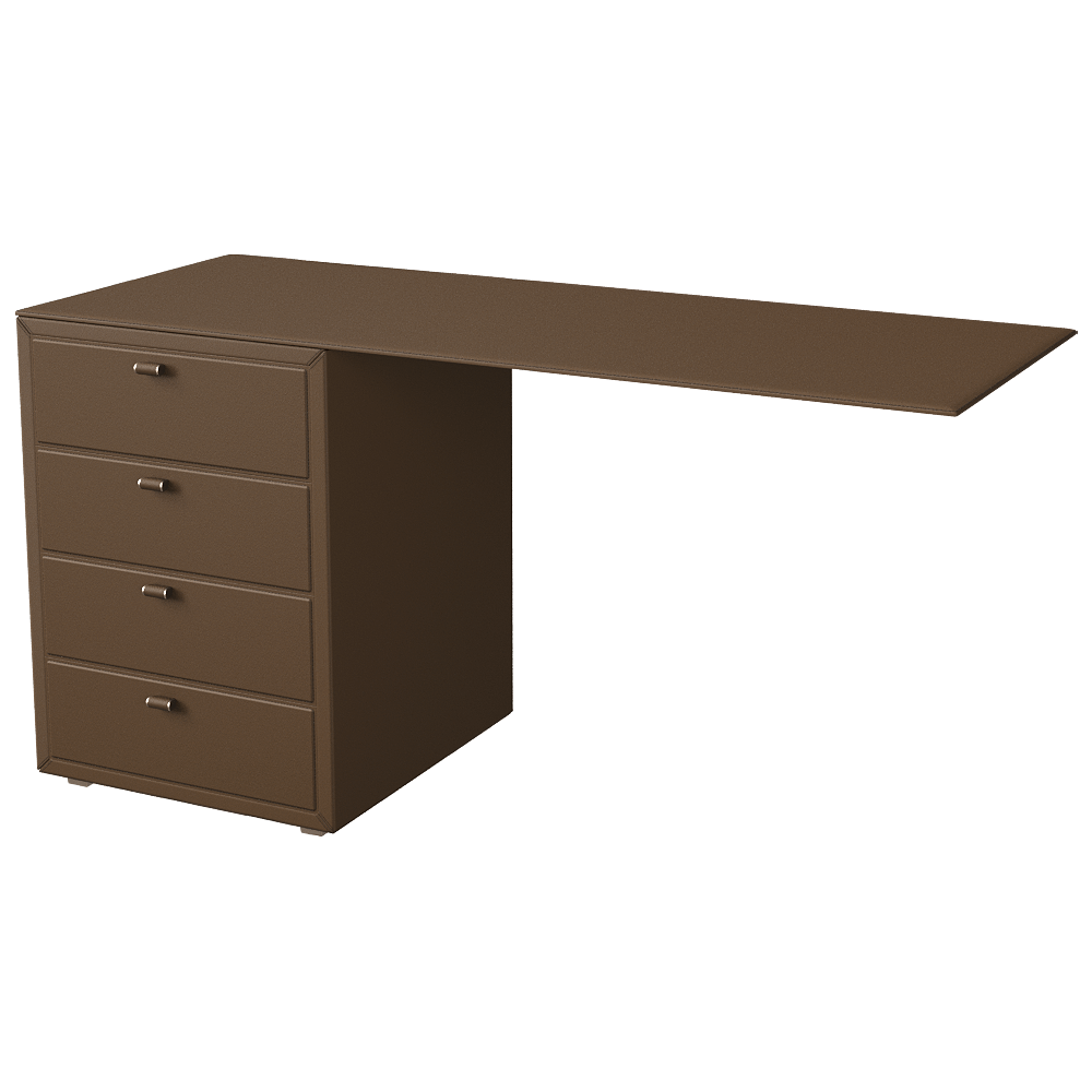 A collection of conference tables and desks with tops in leather or plate glass. The leather bases are fitted with cable ducts and, on request, multimedia boxes with electrical, HDMI, RJ45, VGA, USB, audio sockets (Art. 546). Also available is the patented system with two retractile cables inside the base which can be reached and pulled out via a small leather door measuring 6.5 x 6.5 cm and inserted in the table top (Art. 591A).