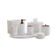 These 7-piece bathroom set includes a lotion dispenser, tumbler holder, soap dish, toothbrush holder, tissue box cover, and wastebasket. With an enchanting touch of white mirrored accents, this bath set makes one of the best bathroom decorating ideas.