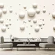 This extremely dominant 3D motif changes the perception of surfaces and rooms. The white-on-white look ensures maximum combinability. The " Pearls" design shines next to any solid color, be it mint, cream, grey, aubergine, olive... Playful and sporty with colorful furnishings or classically elegant and stylish in combination with white or black surfaces such as ebony. This design is used at trade fairs, in the retail sector, in open-plan offices, hotels or jewelry stores.
