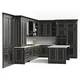 Italian classic kitchen with island with black frame fronts and bronze patina. The variety of available solutions will allow the headset to perfectly fit into your interior, which will undoubtedly become the hallmark of your home. Facade material - Egger® MDF. Inner body - Egger® black laminated chipboard. All fittings in the Blum® kitchen set with door closers.