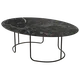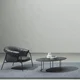 The new coffee table completes a collection characterised by generous shapes and envelpong lines inspired by tailoring with an haute-couture effect. The tops are supported by a light metal frame.