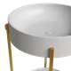 The Stand washbasin comes in round or oval shape. Made with innovative LivingTec® material, its features fit perfectly with the elegant metal structure, available in brass, black and white, that gives a sense of lightness to the entire collection.
