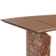 A collection that features a highly elegant and stylish design and comprises a series of desks and conference tables with tops in hard leather and bases in hard leather, marble or wood. The cabinets, drawer cabinets and bookcase panels are fully covered in hard leather.