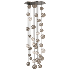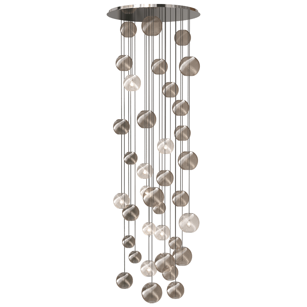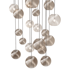 Сферические элементы из дутого стекла доступны в четырёх размерах и двух вариантах декора, с подсветкой и без неё. Специальная конструкция позволяет устанавливать более вертикальные стеклянные элементы и создавать бесконечное количество индивидуальных комбинаций.
