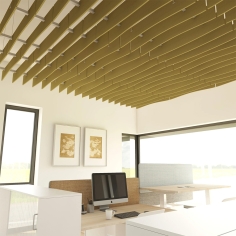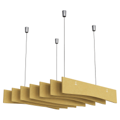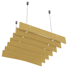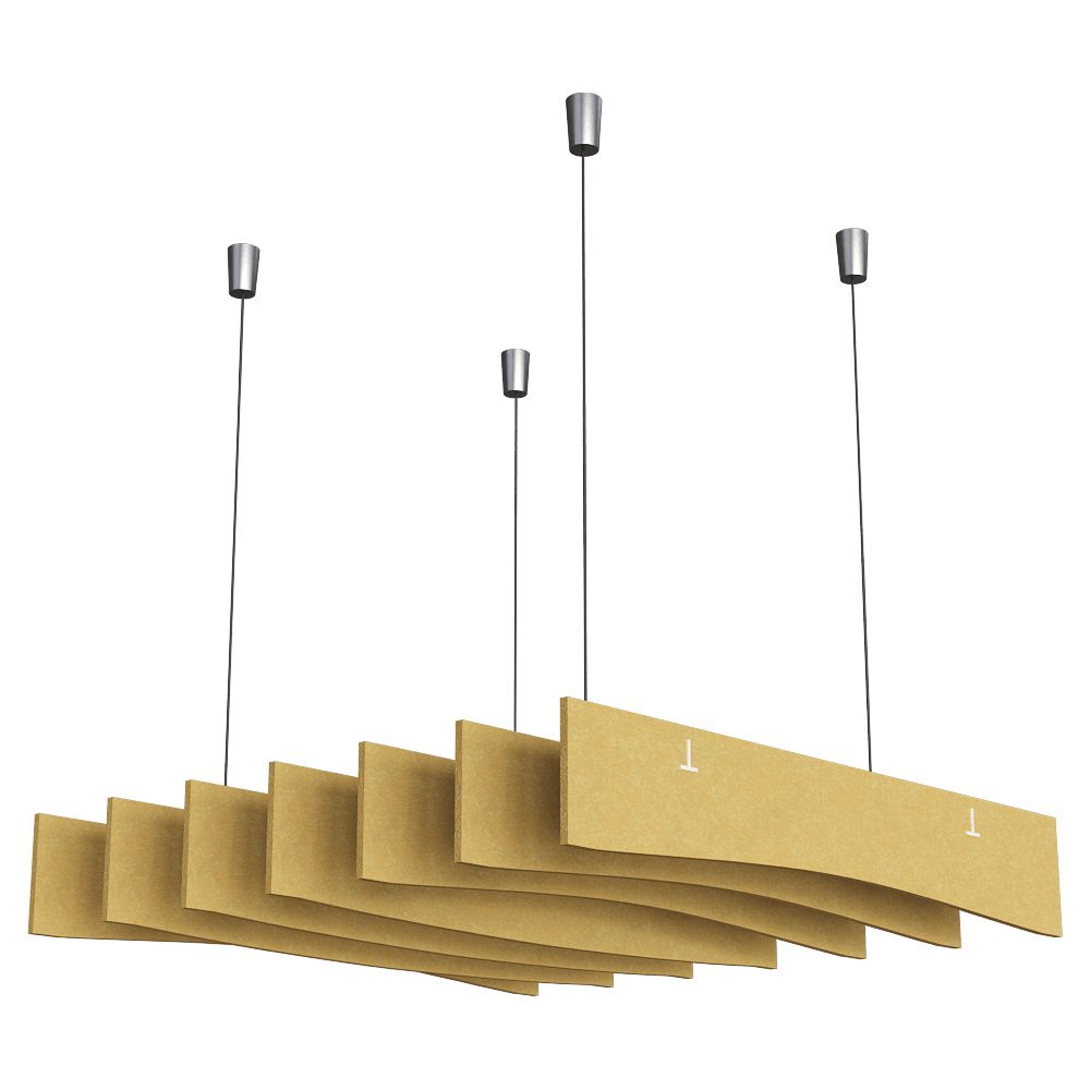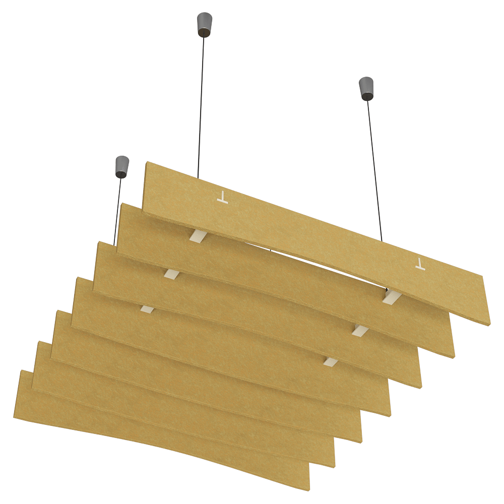 Акустические потолочные панели — уникальное решение для улучшения акустики помещений. Благодаря вертикальному параллельному расположению и инновационной форме панели эффективно поглощают звук, придавая помещению ощущение лёгкости и динамики. Изготовленные из экологически чистых полиэфирных волокон, полученных из переработанных ПЭТ-бутылок, они экологичны, безопасны для здоровья и устойчивы к повреждениям и загрязнениям. Идеально подходят для больших открытых пространств, обеспечивая свободную циркуляцию воздуха и оптимальное использование естественного освещения.