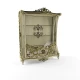 Illuminated 3-door showcase. The shelves are made of glass. Decorated with carved elements. Other finishes are possible.