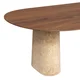 Anchor is a luxurious dining table available in three sizes, featuring a wood top supported by two rounded Travertine legs.