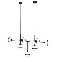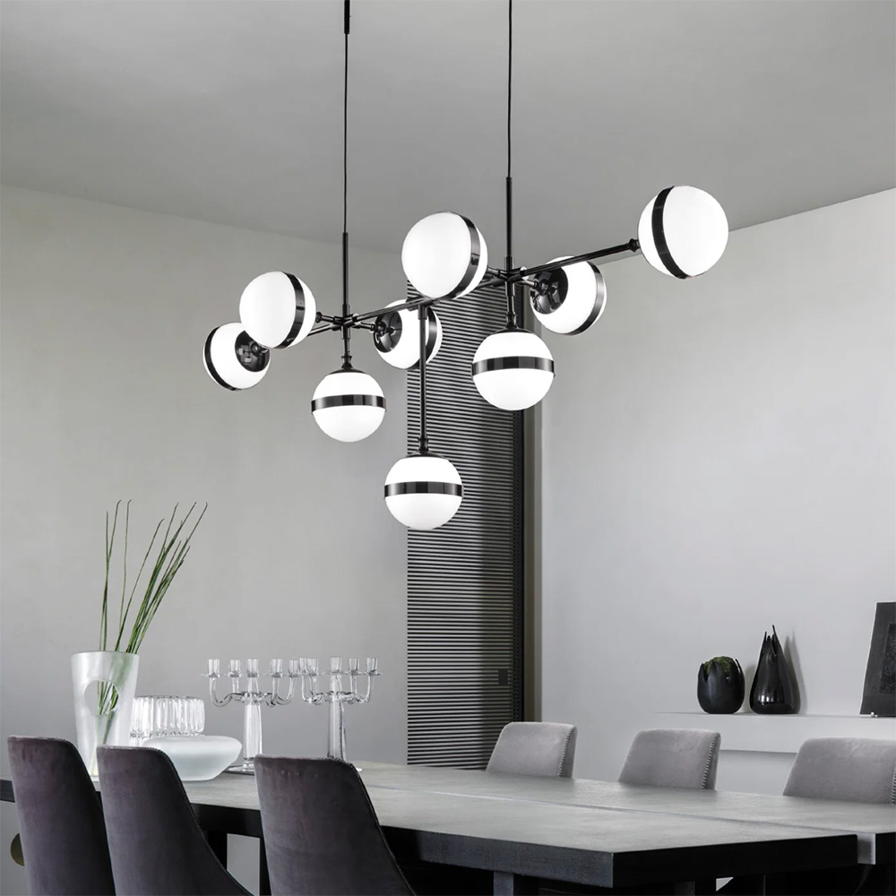 White and black. Peggy was created starting from this chromatic and material polarity. This lighting design combines the lightness of glossy white blown glass, entirely handmade, with the liveliest character of the glossy metal black or antique brass. This effective combination conveys rationality and elegance at the same time.
