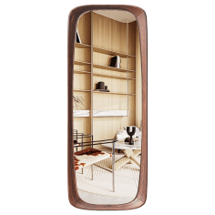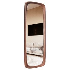 Each piece is designed with a solid wood frame that contrasts beautifully against the reflective surface, celebrating the timeless appeal of mid-century design. The natural wood grain adds warmth and depth, making every mirror in the collection uniquely expressive.