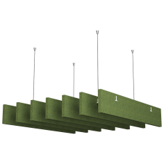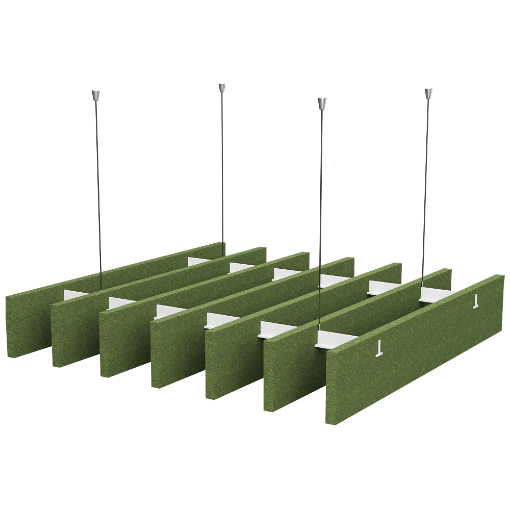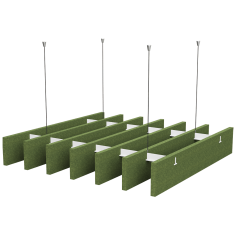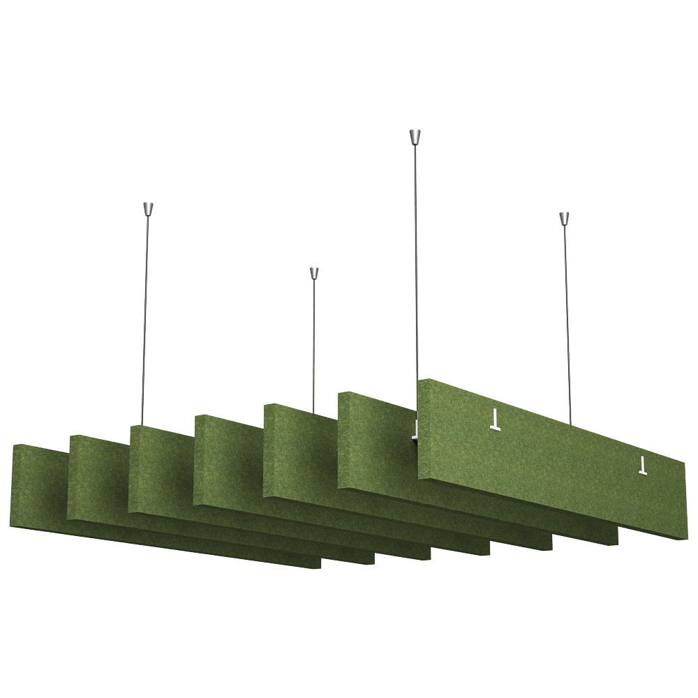 Acoustic ceiling panels offer a unique solution for improving interior acoustics. Thanks to their vertical, parallel layout and innovative shape, the panels effectively absorb sound, giving the space a light and dynamic feel. Made from eco-friendly polyester fibres derived from recycled PET bottles, they are environmentally friendly, health-friendly and resistant to damage and pollution. Ideal for large, open spaces, they also ensure free airflow and optimum use of natural lighting.