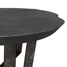 Made entirely using artisanal methods. Top veneered in sliced oak trunk, debarked and sanded by hand. Variable diameter depending on the cross-section of the tree trunk. The thin metal support has chromatic variations obtained by hand, through special, unique and unrepeatable procedures. There different shapes and colors make each object a unique and original piece.