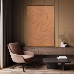 “Warm Rhythms” is an abstract painting executed in deep terracotta tones that create a feeling of warmth and natural comfort. The smooth, embossed lines resemble waves of sand or echoes of the wind, forming a soft and harmonious movement. The work conveys calmness while filling the space with the energy of natural beauty.