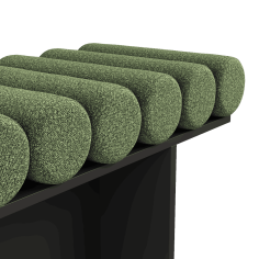 A model that looks both sculptural and cozy thanks to the vertical shapes of the base and the rhythmic volume of the cylindrical modules.